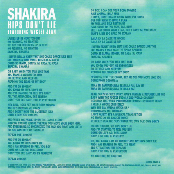 | Accueil > Discographie & Vidéographie > Discographie > Oral Fixation Vol. 2 > Singles > Hips Dont Lie > Hips Don't Lie - CD Promo, 2006 (Etats-Unis) |